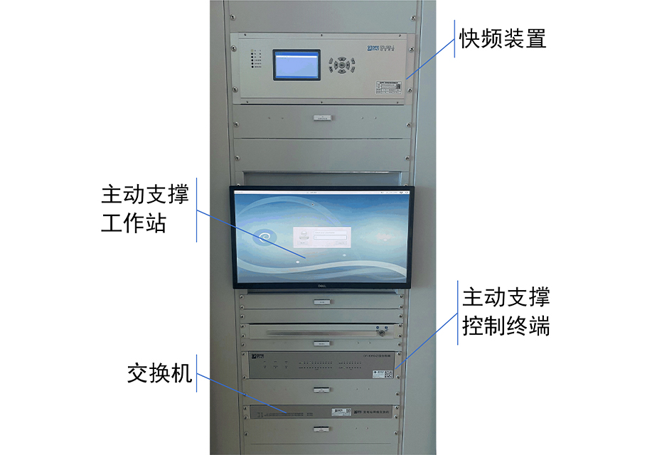 • 系统主要由主动支撑控制终端、快频装置和主动支撑工作站三部分组成。